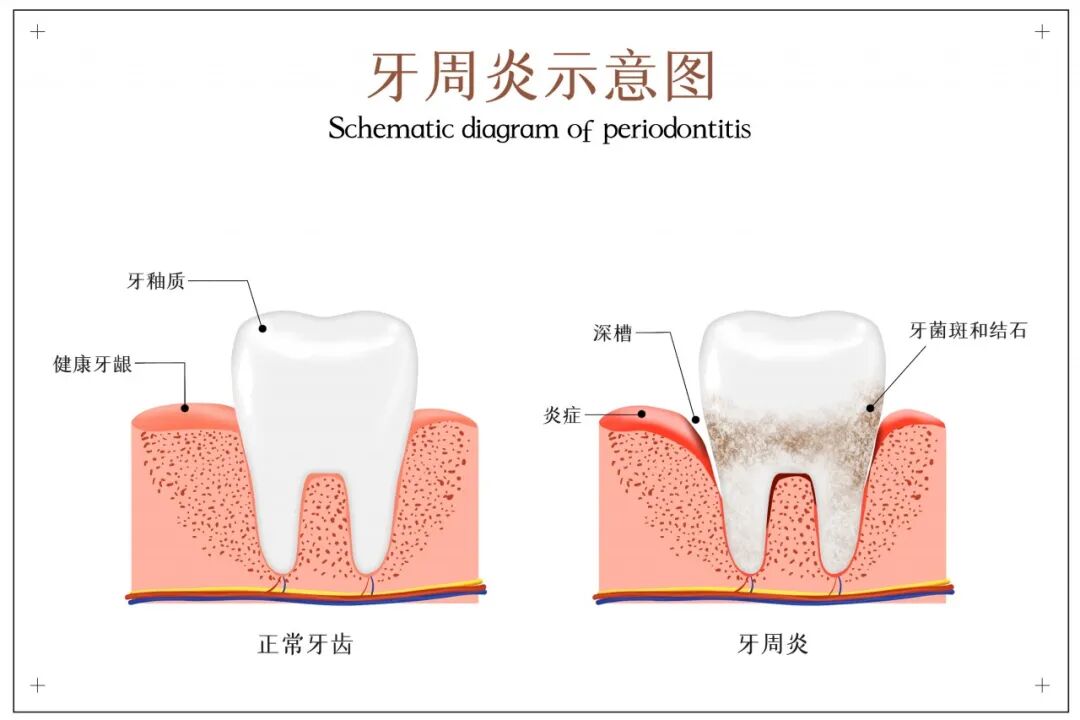 牙周病简单的讲,就是牙齿周围的软、硬组织(牙龈、牙槽骨等)存在炎症了,牙周病可分为牙龈病和牙周炎两大类。